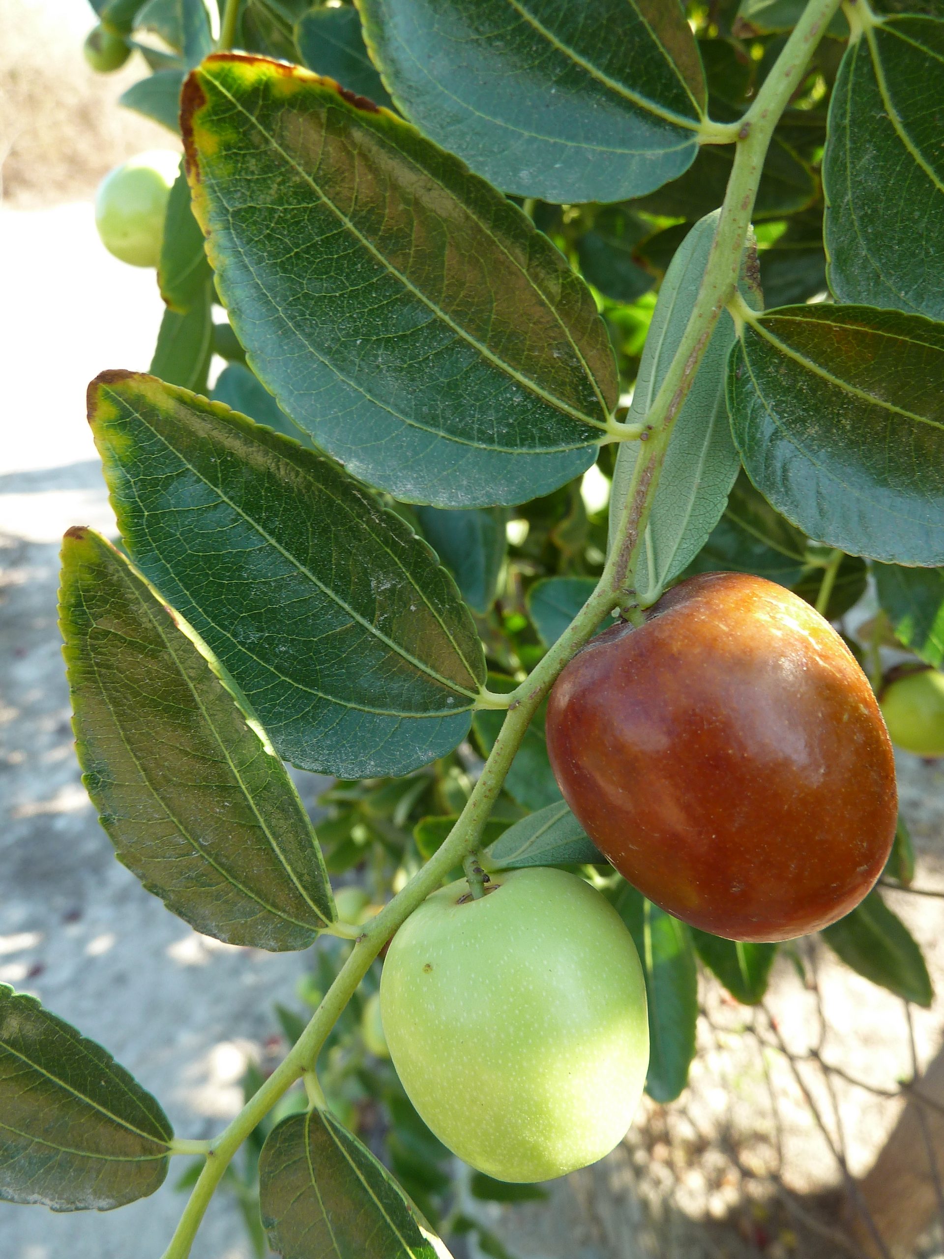 Le Jujubier commun est un arbuste épineux originaire de Chine et répandu dans les régions méditerranéennes, dont le fruit comestible, le jujube, est un peu oublié en Occident. Il est encore cultivé, surtout en Extrême-Orient, où il en existe de nombreuses variétés. C’est un arbre ou arbuste de 6 à 10 m de haut à rameaux épineux (mais il existe des variétés inermes). Les feuilles caduques sont oblongues, finement dentées, à stipules épineuses. Les fleurs petites, jaunâtres, apparaissent à l’aisselle des feuilles. Elles permettent la fabrication d’un miel réputé au Yémen. Le fruit, ovoïde, est une drupe, d’abord jaune puis rouge à maturité, contenant un noyau dur, elliptique. La pulpe est sucrée, gélatineuse, à saveur fade. Les jujubes, riches en vitamines A et C, entrent dans diverses préparations médicinales.